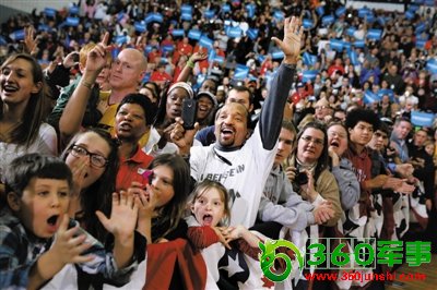 2日,美国俄亥俄州,支持者在一场竞选集会上热烈欢迎。
